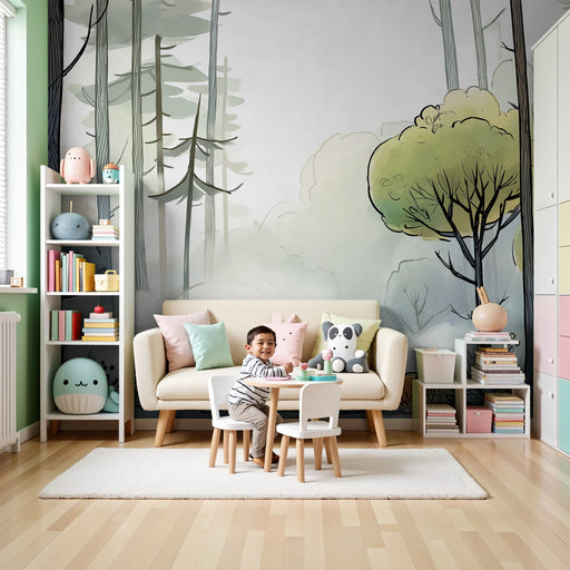 KidsWallPustite se odnesti z nežno spokojnostjo meglenega gozda s to tapeto za otroško sobo. Predstavljajte si jutranji sprehod, kjer dnevna svetloba nežno...