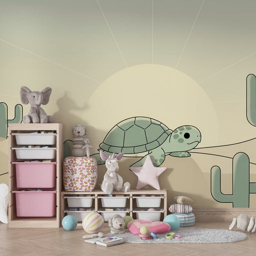 KidsWallVzemite svojega otroka na edinstveno pustolovščino s to tapeto za otroke, ki prikazuje ljubko želvo, ki se sprehaja po sončni puščavi. Z mirnim oza...