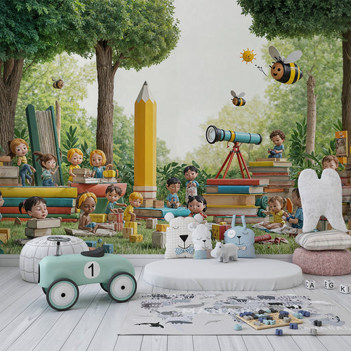 KidsWallOdkrijte naš izobraževalni tapet, ki prikazuje veselo srečanje otrok v naravnem okolju. Idealno za otroške sobe in igralnice, ta dizajn spodbuja uč...