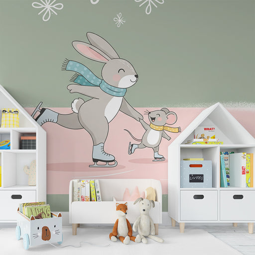 KidsWallPreoblikujte otroško sobo v čarobno okolje s to tapeto za otroke, ki prikazuje ljubkega zajca in miško, ki drsata skupaj. Na roza drsališču se ta d...