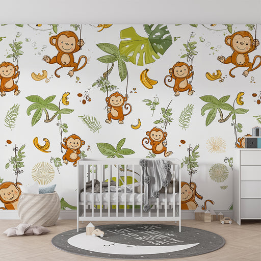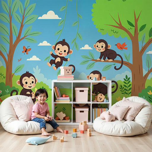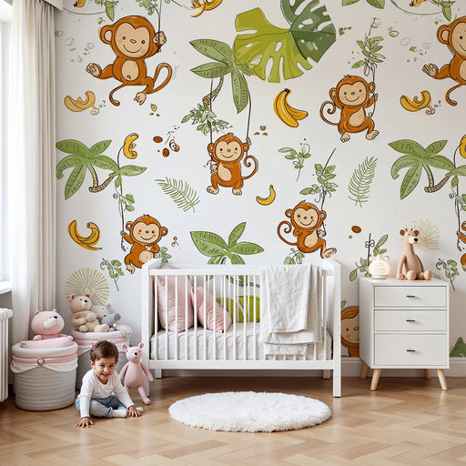 KidsWallPreobrazite sobo svojega otroka v pravi tropski raj s to tapeto za otroško sobo. Predstavljajte si očarljivo džunglo, kjer se veseli majhni opički ...