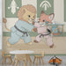 Preoblikujte otroško sobo v zabavni dojo s to otroško tapeto, ki prikazuje leva in lisico v polnem boju borilnih veščin. V okolju, navdihnjenem z borilnimi tradicijami, se ti ljubki živali borijo z energijo in navdušenjem, kar ustvarja dinamično in igrivo vzdušje.