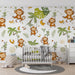 Odkrijte naš tapet opic, popoln za otroške sobe ali igralnice. Ta zabaven dizajn prikazuje vesele opice, ki se zibajo med džungelskimi listi in bananami, ujamejo domišljijo s svojim živahnim in barvitim slogom.