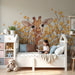 Kids room wallpaper | Happy giraffe in the middle of flowers