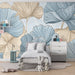 Nežni odtenki modre in bež ustvarjajo mirno vzdušje, medtem ko so drobni detajli listov čudovito reproducirani, da ustvarijo skoraj tridimenzionalni učinek. Ta subtilna dekoracija osvetli prostor in prinaša občutek svežine.