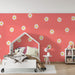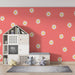 Preoblikujte otroško sobo s to čudovito otroško tapeto, okrašeno z nežnimi belimi cvetovi na koralnem ozadju. Ta vesel in pisano vzorec ustvarja živahno in prijetno vzdušje, popolno za spodbujanje domišljije najmlajših.