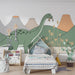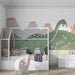 Mogočni dinozaver se sprehaja med nežnimi rastlinami in blagimi gorami, ustvarjajoč mirno in igrivo vzdušje. Pomirjujoči zeleni in bež toni dodajo toplo vzdušje prostoru, kar ustvari pristen dom za vašega otroka.