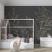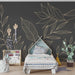 Kinderzimmer Tapete | Elegante Blätter auf dunklem Hintergrund
