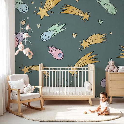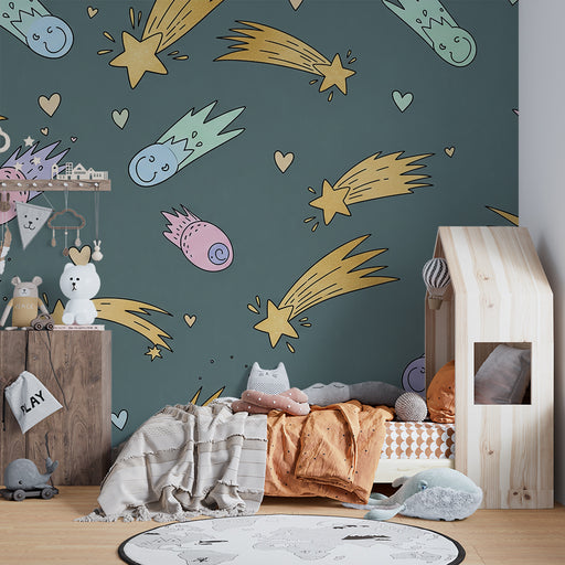 KidsWallTransformera ditt barns rum till en stjärnhimmel med denna barnrum tapet fylld med glada kometer och glittrande stjärnor. Varje element, från paste...