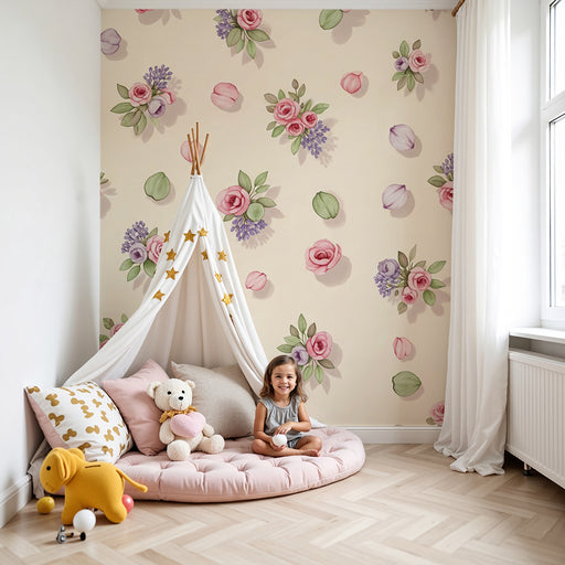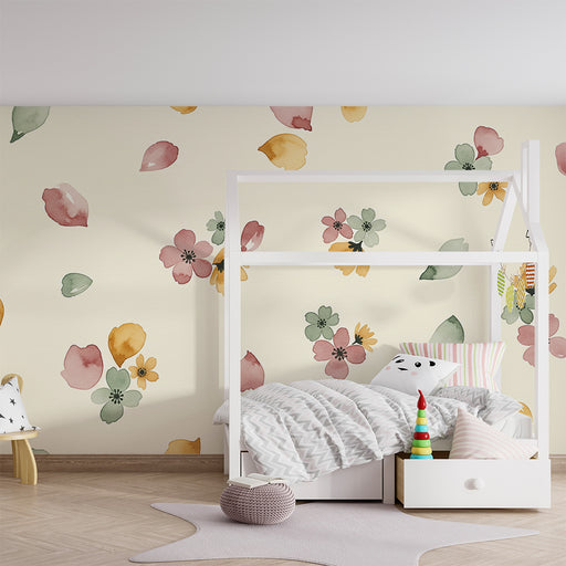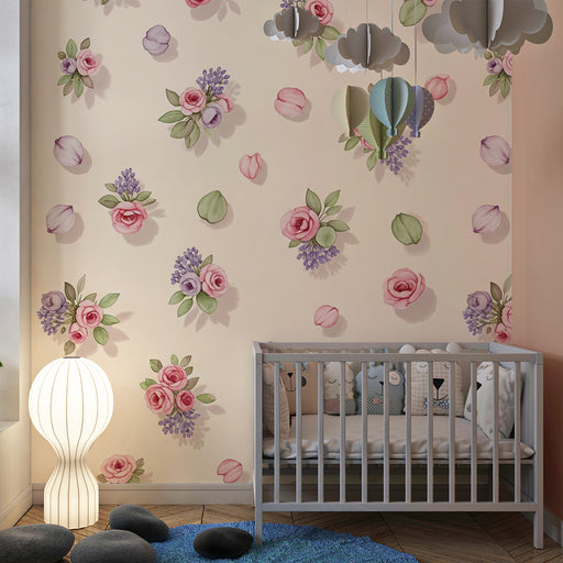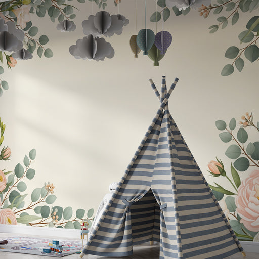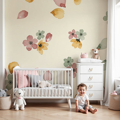 Visa alla detaljerBarntapet | Delikata blommor och pastellfärgade löv