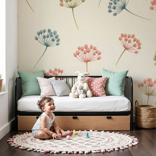 KidsWallTransformez la chambre de votre bébé en un espace doux et apaisant avec ce papier peint pour bébé orné de fleurs délicates et de motifs en spirale....