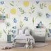 Barntapet | Blå blommor och citroner på ljus bakgrund