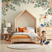 Denna barnrum tapet är perfekt för att stimulera fantasin samtidigt som den skapar en mjuk och lugnande atmosfär. Kombinera den med ljusa trä möbler och naturliga tyg tillbehör för att skapa en varm kokong där ditt lilla barn kan trivas.