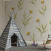 Denna blommiga design, på en ljus bakgrund, för tankarna till naturens skönhet och bjuder in till drömmar. Varje detalj, från de känsliga kronbladen till de graciösa stjälkarna, är noggrant utformad för att skapa en harmonisk och välkomnande känsla. Perfekt för att stimulera din lilla älsklings fantasi samtidigt som det skapar en varm atmosfär.