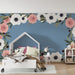 Papier peint chambre bébé | Cadre floral délicat avec roses et anémones sur fond bleu
