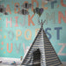 Barntapet | Färgglatt alfabet och delikata blå blommor