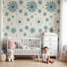 Tillsätt en touch av charm och mjukhet till ditt barns rum med vår retro blå blomtapet. Denna design kombinerar delikata blå blommor på en pastellbakgrund och skapar en vintage och lugnande atmosfär.