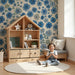 Perfekt för att försköna väggarna i ett barns rum, denna blåa blommiga tapet kommer att fängsla och ge rummet en charmig estetik.