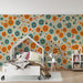Barntapet | Retroblommor i blått och orange