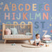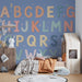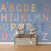 Barntapet | Färgglatt alfabet och delikata blommor på blå bakgrund