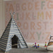 Denna barnrumstapet med alfabetet i pastellfärger är perfekt för att utbilda och inspirera barn samtidigt som de dekorerar sitt rum med stil. Bokstäverna tillsammans med blommiga mönster och stjärnor ger en färgglad och lekfull touch.