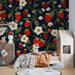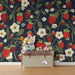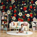 Barntapet | Jordgubbar och blommor på mörk bakgrund