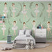 Omvandla ditt barns rum till en värld av dans med vår ballerinor och gröna löv tapet. De delikata ballerinamönstren omgivna av elegant lövverk på en lugnande grön bakgrund ger en atmosfär av grace och kreativitet.