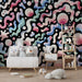 Med sina dynamiska mönster och nyanser av rosa, blått och grönt är denna originella tapet perfekt för att skapa en glad och kreativ atmosfär. Det är ett idealiskt val för barn som gillar moderna och konstnärliga designer och ger en unik touch till deras personliga utrymme.