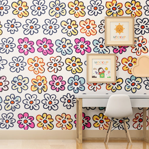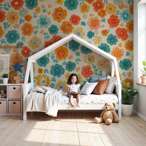 Visa alla detaljerBarntapet | Ljusa flerfärgade blommor