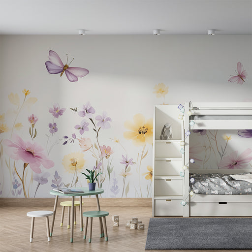 Visa alla detaljerBarntapet | Pastellblommor och fjärilar