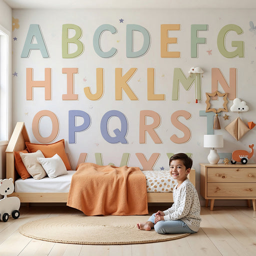 KidsWallTransformera ditt barns rum med denna färgglada lekfulla alfabettapet, perfekt för att väcka deras nyfikenhet och stimulera deras lärande. Alfabete...