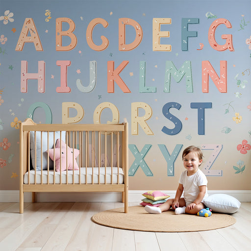 KidsWallLägg till en pedagogisk och konstnärlig touch till ditt barns rum med vår barnrumstapet med alfabet i pastell och delikata blommor. Denna charmiga ...