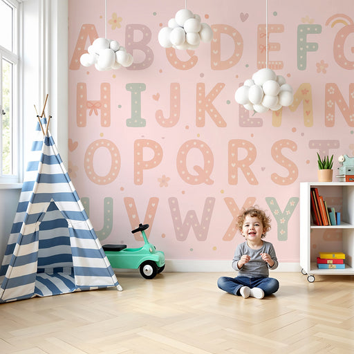 KidsWallLägg till en pedagogisk och charmig touch i ditt barns rum med vår pastellalfabet tapet. Denna delikata design har färgglada bokstäver omgivna av b...