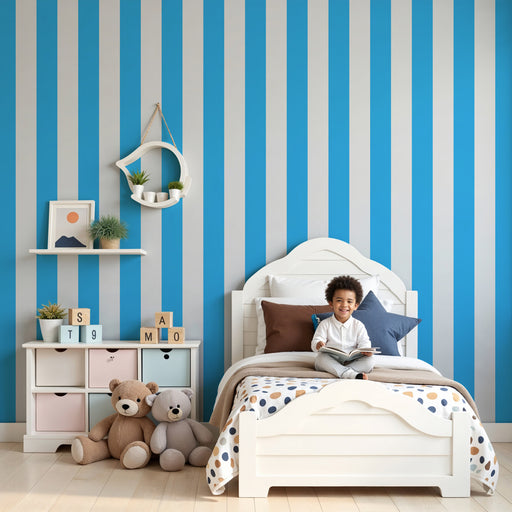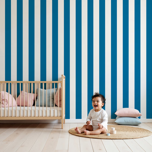 Visa alla detaljerBarntapet | Eleganta vertikala ränder i blått