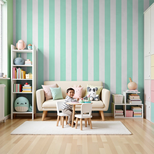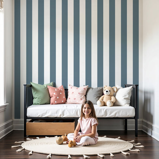 KidsWallFörvandla ditt barns rum med denna barn tapet med vertikala ränder och en sofistikerad touch. De blågrå linjerna skapar en lugnande och modern effe...