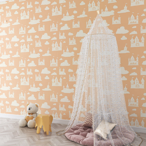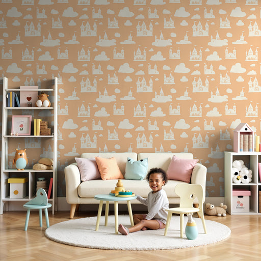 KidsWallTransformera ditt barns rum till en riktig sagovärld med denna barn tapet som visar en majestätisk slott i ömtåliga nyanser. Rosa kupoler och elega...