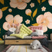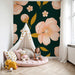 Blommorna, tillsammans med gyllene löv, sticker elegant ut mot en smaragdgrön bakgrund och erbjuder en harmonisk kontrast som stimulerar fantasin. Denna blomsterdekoration är perfekt för att väcka ditt lilla barns nyfikenhet samtidigt som den ger en charmig touch till rummet.