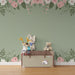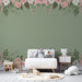 Transformera ditt barns rum till en förtrollande plats med denna barnrum tapet prydd med delikata blommor. Pastellrosor och vita blommor blommar graciöst på en mjuk grön bakgrund och skapar en lugnande och varm atmosfär.