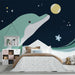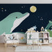 Barntapet | Delfin under stjärnorna med vågor och blommor