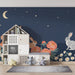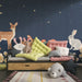 Barntapet | Skogsdjur under en stjärnbeströdd himmel med ömtåliga blommor