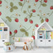 Barntapet | Jordgubbar och blommor på mjuk grön bakgrund