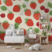 De röda jordgubbarna och de glänsande körsbären, tillsammans med delikata vita blommor, ger en känsla av natur och vitalitet till rummet. De levande färgerna och den mjuka bakgrunden skapar en varm atmosfär, perfekt för att stimulera din lilla barns fantasi.