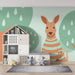 Omvandla ditt barns rum till en glad och välkomnande plats med denna barn tapet med en vänlig känguru i huvudrollen. Klädd i en randig tröja sitter kängurun fridfullt mitt i en förtrollande landskap, omgiven av träd med mjuka former och pastellfärger.