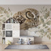 Skapa en lugn kokong för din baby med denna tapet för barnrum som visar en sömnig uggla på en fluffig moln. De mjuka och naturliga nyanserna i denna dekor ger en varm och tröstande atmosfär, perfekt för vilotider.