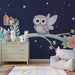 Omvandla ditt barns rum till en förtrollande värld med denna barnrum tapet som visar en bedårande uggla med delikata vingar. Sittande på en färgglad gren, ser denna uggla över en förtrollande dekoration där exotiska blommor blommar under en stjärnklar himmel.