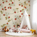 Papier peint chambre bébé | Fleurs et framboises sur fond crème