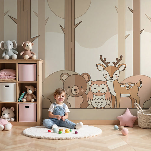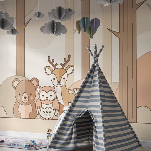 KidsWallAjoutez une touche de douceur et de tendresse à la chambre de votre bébé avec ce papier peint pour bébé illustrant un adorable lapin et un renard e...