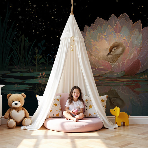 KidsWallOmvandla ditt barns rum till en förtrollande värld med denna barnrum tapet som visar en lugnt sovande anka i en vacker lotusblomma. Denna förtrolla...