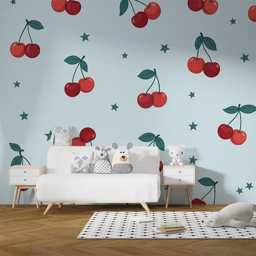 KidsWallLägg till en touch av fräschör och glädje i ditt barns rum med denna barnrumstapet dekorerad med läckra körsbär och stjärnor. Den ljusblå bakgrunde...