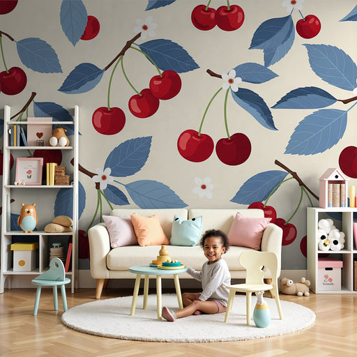 KidsWallLägg till en touch av fräschör och mjukhet i ditt barns rum med denna barntapet dekorerad med glänsande körsbär och delikat lövverk. De röda, safti...